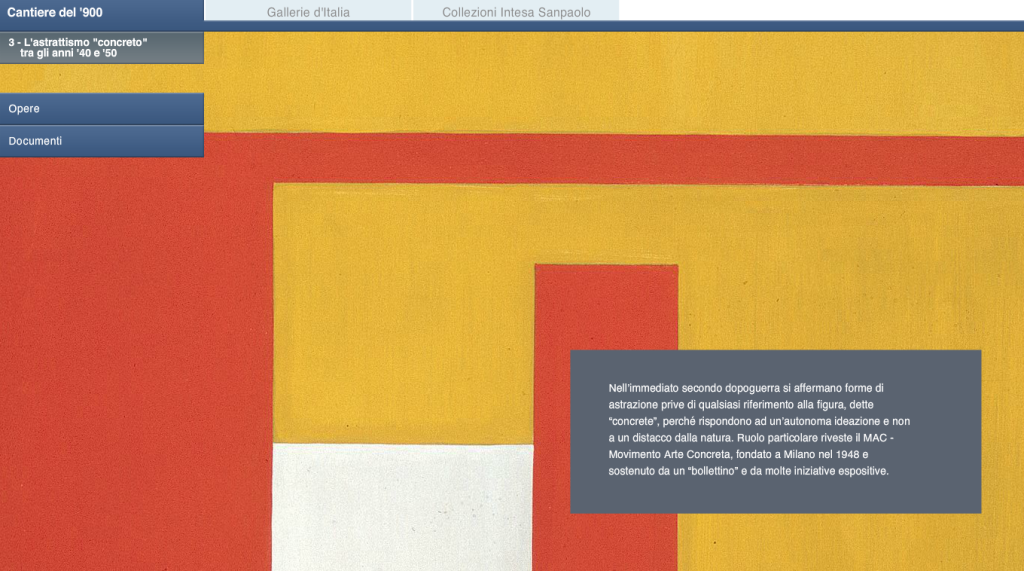 Development of touchscreen software for Cantiere del ’900, Gallerie d’Italia – Piazza Scala, Milano.